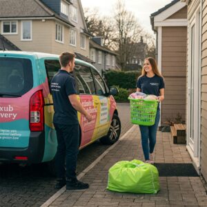 Schedule a pickup via our app, website, or WhatsApp. We offer free doorstep collection at your preferred time slot. Track your driver in real-time!